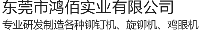 東莞市鴻佰實業有限公司專業制造和生產各種旋鉚機、氣動旋鉚機、液壓旋鉚機、鉚釘機、油壓鉚釘機、鉚接機、壓鉚機、雞眼機,全自動鉚釘機,液壓旋鉚,自動多軸攻牙機及各種鉚釘。在臺灣較早研發,銷售,安裝,服務與一體的高新機械型鉚釘機廠家(賣家),其產品廣泛適用于鉚接五金、電子、汽車配件、文具、鎖具、家具、燈飾、箱包、手袋、服裝、休閑運動器材、醫療器材等行業。